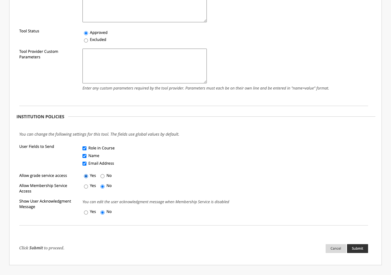 - Primary Contact Name -- The person managing the LTI integration